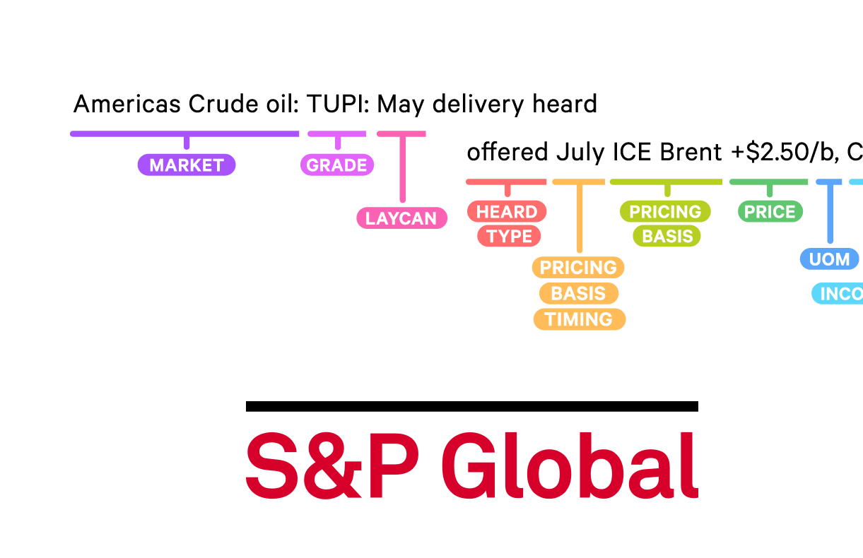 “Heards” are trading activities market reporters receive daily via phone, email and instant messenger – essentially, information that was heard about commodities trades across many different markets like agriculture, coal, electric power, natural gas or oil, happening and published in real time. Relevant information collected that meets the methodological standards is published through real-time information services as “heards” in order to test information with the market. The information includes up to 32 different attributes, like price, participants or location, that are published as both structured and unstructured data. Customers include banks, financial institutions and trading houses at more than 15,000 public and private organizations in over 150 countries, who access the data via S&P’s Platts Connect platform, the underlying API or third-party vendors.